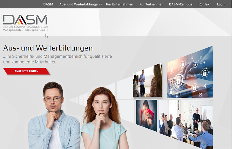 Die DASM - Deutsche Akademie für Sicherheits- und Managementausbildungen GmbH bildet in den Bereichen Sicherheit, Management, Erste Hilfe und Brandschutz aus und weiter. Ihre Standorte sind Berlin, Frankfurt, Mannheim und Stuttgart.