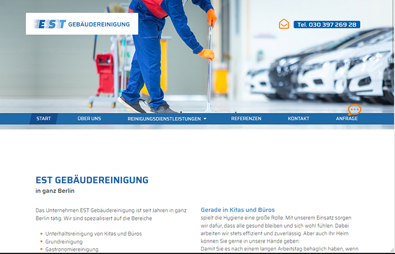 Das Berliner Unternehmen EST Gebäudereinigung hat sich auf die Bereiche Unterhaltsreinigung von Kitas, Unterhaltsreinigung von Büros, Grundreinigung, Gastronomiereinigung, Reinigung nach Veranstaltungen und Baureinigung spezialisiert. Zudem bietet es einen Notfall-Service an.