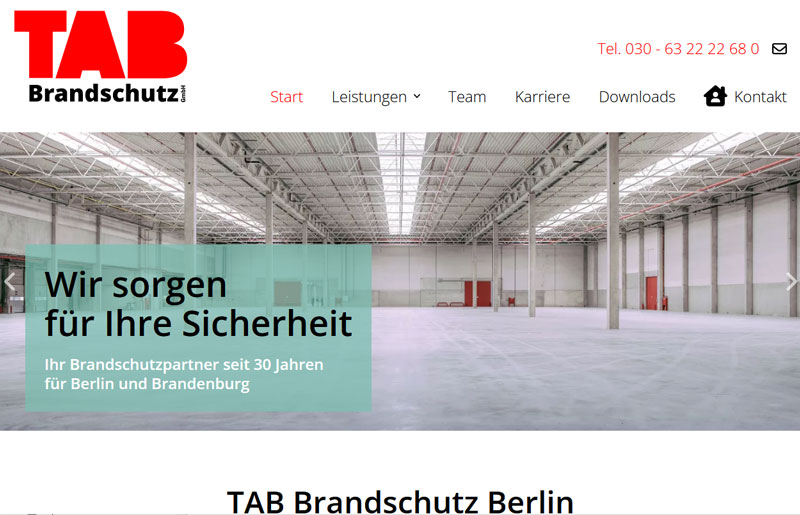 Die TAB Brandschutz GmbH ist Ihr Brandschutzpartner seit über 30 Jahren in Berlin. Leistungen: Verkauf, Installation und Instandhaltung von Feuerlöschgeräten und Rauchmeldern, Wartung von Rauch-Wärme-Abzugsanlagen, Brandschutztüren, Löschwasseranlagen und Hydranten.